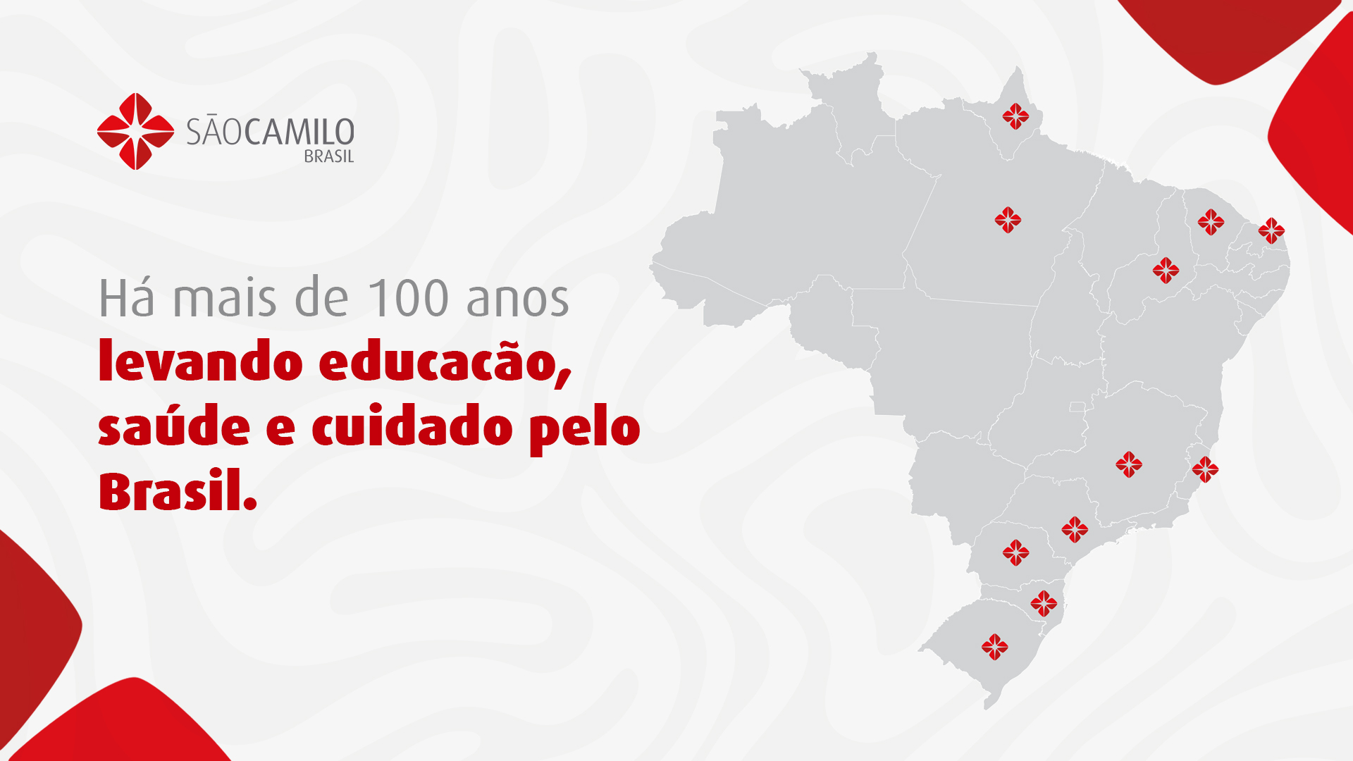 Com mais de 400 anos de história, o São Camilo está presente há mais de 100 anos no Brasil e atua em todo o país por meio de mais de 80 unidades nas áreas de saúde e educação, promovendo uma atuação integrada que une tradição, excelência e impacto social.